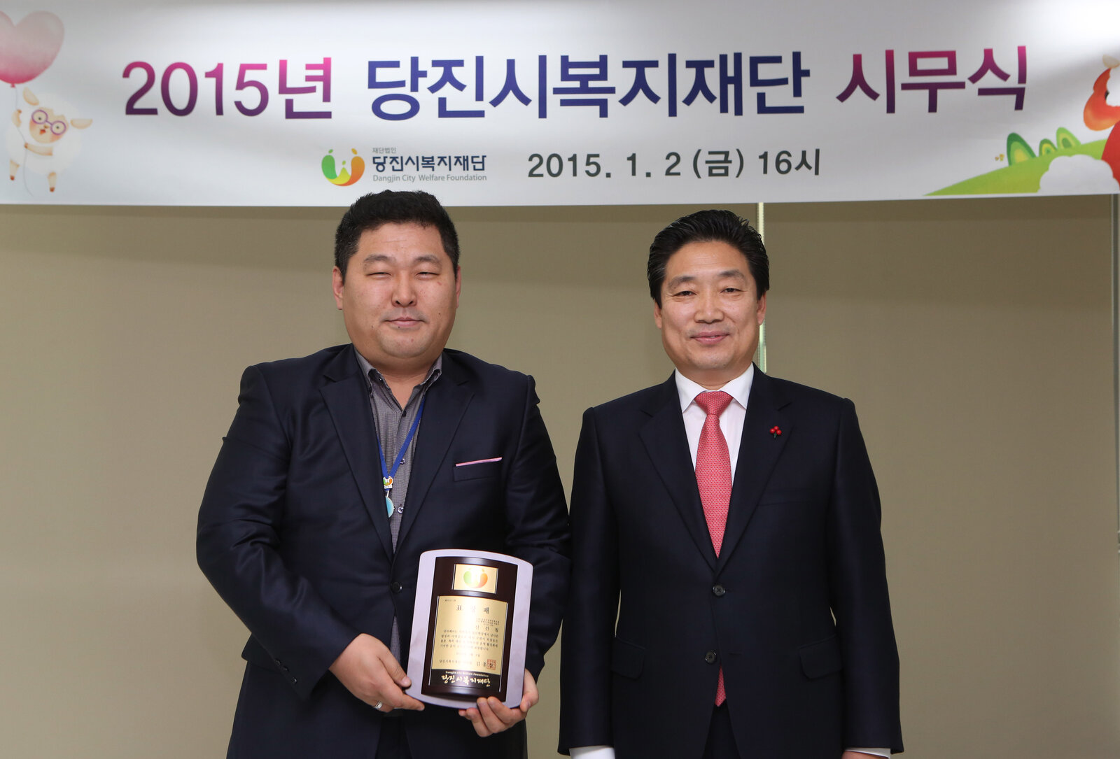 특히, 복지 일선현장에 남다른 열정과 사명감으로 타의 모범이 되며, 재단 및 수탁시설 운영 활성화에 기여한 신건철 팀장(당진시장애인복지관 기획?자원연계팀), 박정은 팀장(당진시노인복지관 지역복지팀)이 대표로 재단 이사장 표창패를 수상했다.
