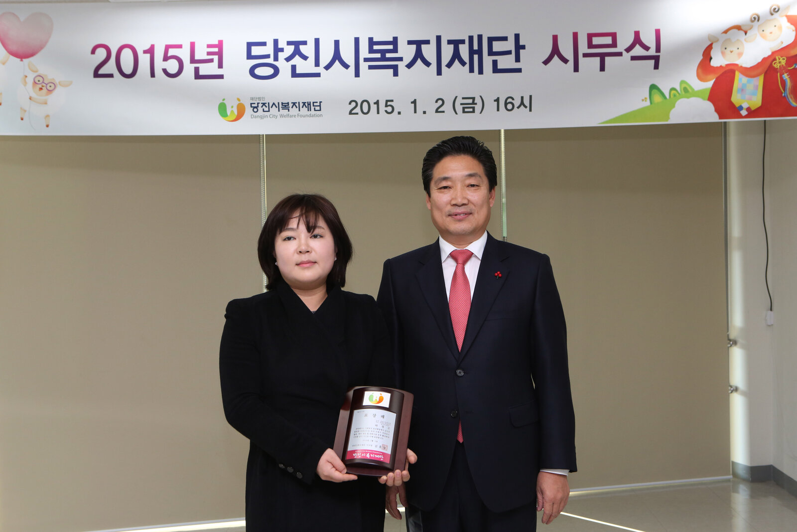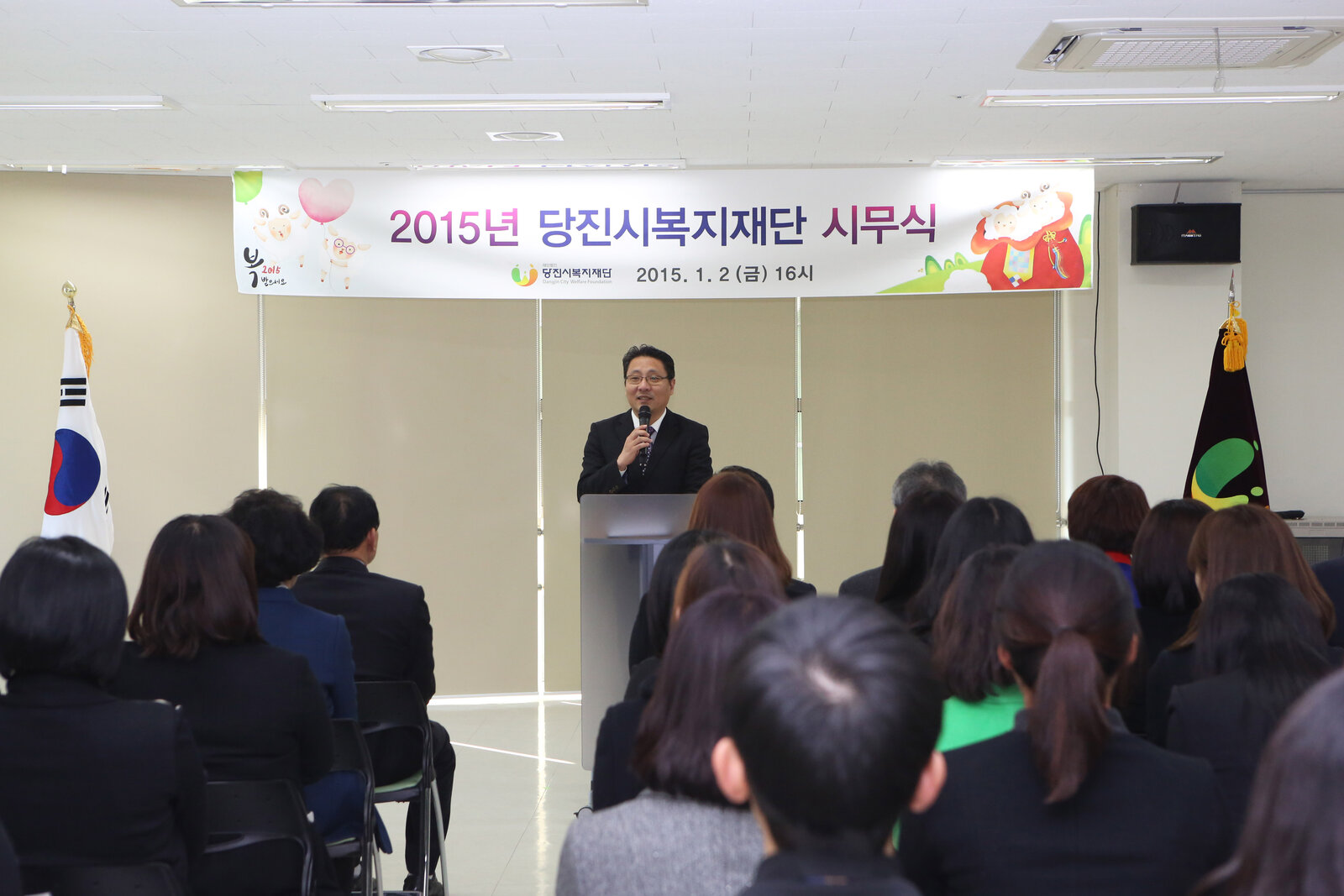 충남 당진시복지재단(이사장 김홍장) 은 지난 2일 종합복지타운에서 재단 및 수탁시설 임직원, 관련 공무원 등 60여명이 참석한 가운데 2015년 새 출발을 다짐하는 시무식을 가졌다.