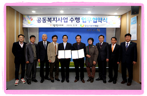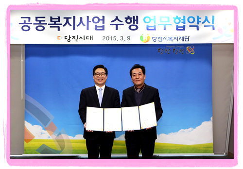 당진시복지재단(이사장 김홍장)과 (주)당진시대(대표이사 이형렬)간의 공동으로 사회복지업무의 진행을 위한 업무 협약식을 9일 14시에 당진시청에서 가졌다.
