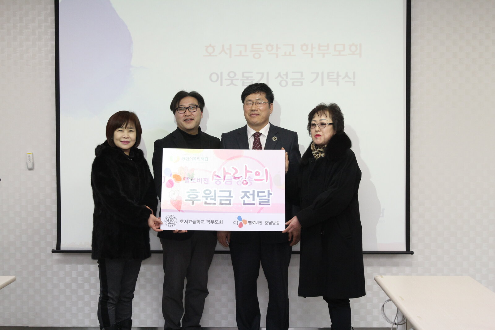 서해안 시대의 중심 참교육의 전당 호서고등학교 학부모회(회장 홍종란)가 지난 1월12일 CJ헬로비전 충남방송에서 2015년 교내 축제에 참여해 교직원과 함께 만든 향초를 판매한 수익금 80여만원을 본 재단의 1%가 만드는 150% 행복키움-디딤씨앗통장에 지정기탁해주셨습니다.