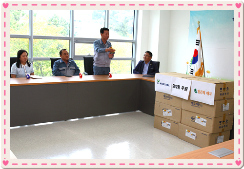 주식회사 휴스틸 당진공장 임직원들은 26일 당진시 복지재단을 방문해 월급 ‘끝전 모으기’를 통해 마련한 돈으로 구입한 철분제 320상자(1000만 원 상당)를 기부해 미담이 되고 있다.