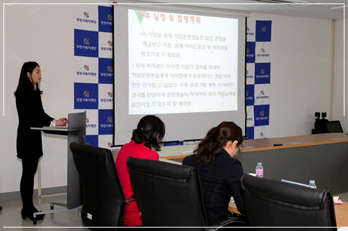 당진시복지재단(이사장)은 지난 6일 당진시종합복지타운 재단 회의실에서 자문위원(3명), 선정기관(14명), 공무원(1명), 재단직원(2명), 평택복지재단(2명)이 참석한 가운데 2013년 당진시복지재단 공모사업 결과보고회를 개최 하였다.