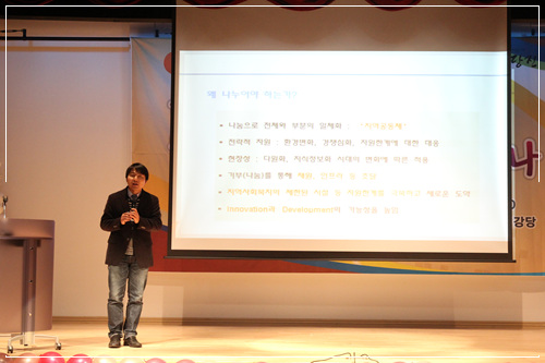 세미나의 주제발표는 이용재 교수(호서대 사회복지과)가 “당진시 기부(나눔)문화 활성화 방안(섹터간 협력과 연대)” 이라는 주제로 기부(나눔)의 필요성, 다양한 사례, 당진시 복지자원과 문제점 및 활성화 방안에 대해 설명 하였다.