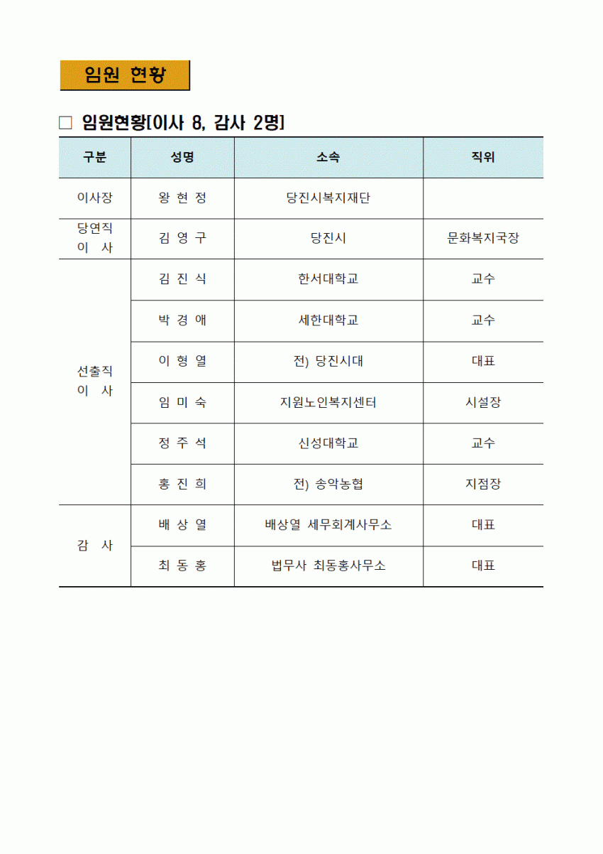 - 이전글 2021년 당진시복지재단 신규채용 직원 중 임직원 친인척 현황 공개 22.03.25