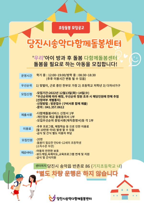 [모집] 당진시송악다함께돌봄센터 아동 모집