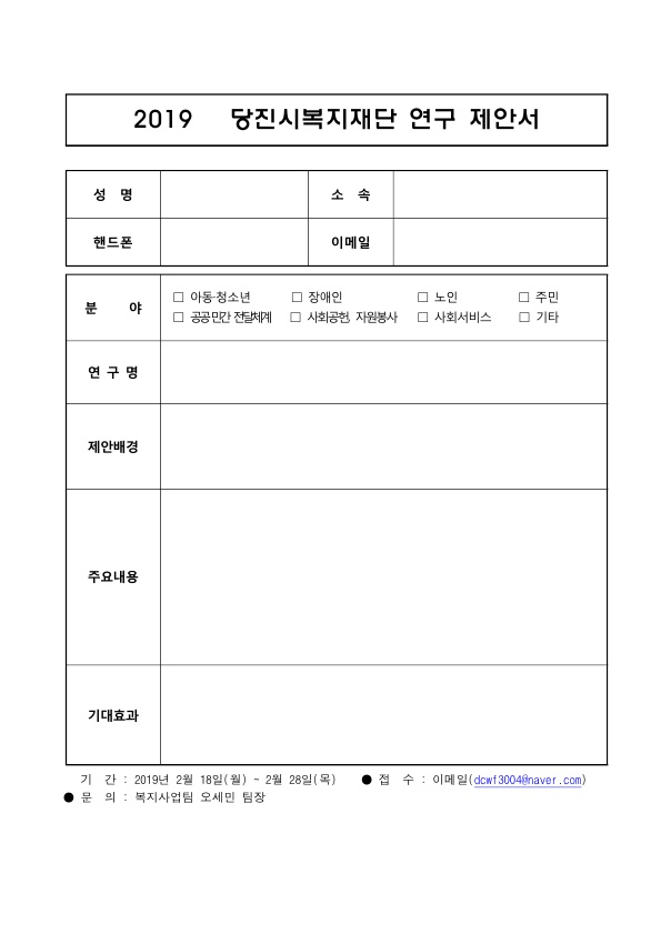 2019년 당진시복지재단 교육 및 연구 주제 선정을 위하여