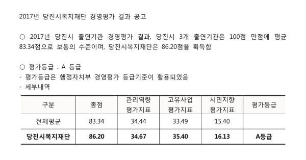 [당진시복지재단] 2017년 경영평가 결과 공고